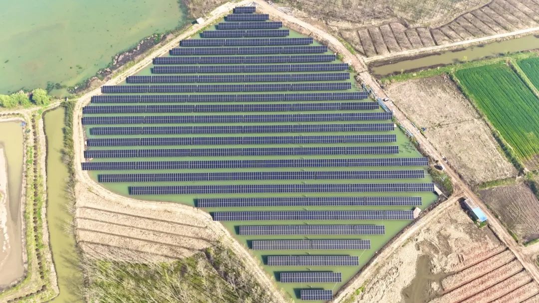 近年来,安徽省合肥市肥东县大力发展光伏新能源产业,加快发展新质生产力。好博科技因地制宜布局多场景综合开发应用,通过持续的项目开发技术全方位创新,高效输出绿色能源,最大限度地提高能源利用效率,针对县域坑塘数量多、分布散的实际情况,整合选取了70余个闲置坑塘,“聚沙成塔”利用坑塘水面建设地面集中式渔光互补项目。总项目投运后将通过租赁电网侧储能项目容量实现光储融合,助力提升当地电网稳定性。